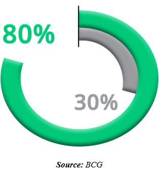 Recent research conducted by Boston Consulting Group, Inc., abbreviated as BCG, the global and one of the biggest IT Consulting firms that partners with leaders in the business world, suggests that 80% of organizations reported digital as their crucial element to go forward, whereas another 30% companies have reported having a digital-first culture in organizations.